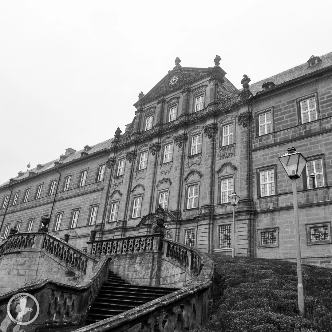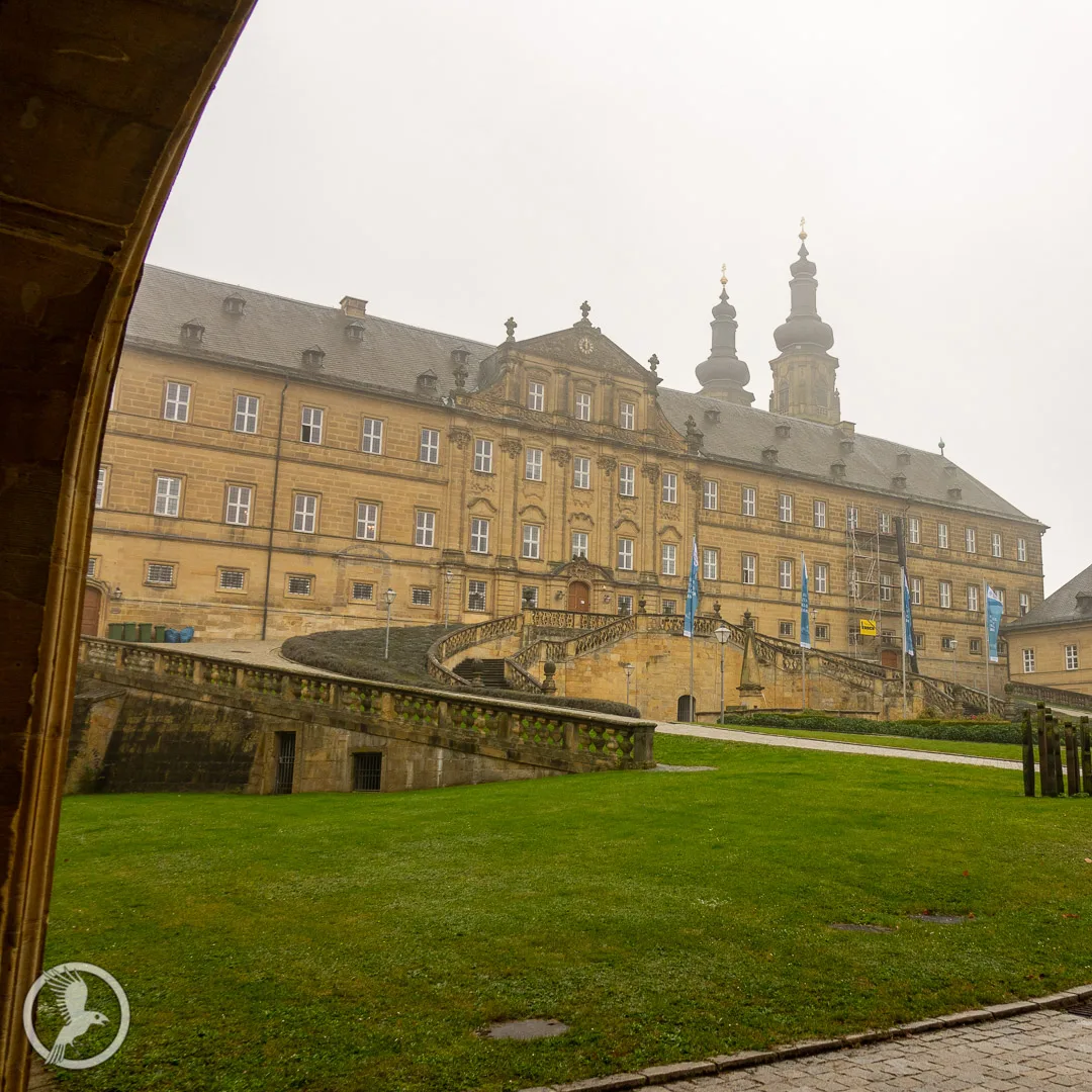Fast ein wenig wie in einem alten Edgar Wallace Film laufen wir durch das Tor und stehen vor der sehr imposanten Klosterkirche von Banz.